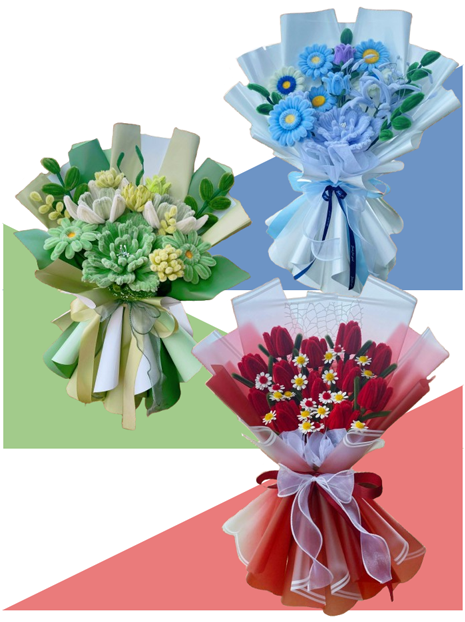 Our booth at the bazaar was a labor of love. We wanted to create a little “haven” where people could find something more than just a fleeting gift. Our display was a kaleidoscope of colors from our signature fuzzy sunflowers and soft lavender sprigs to our bold, plush red peonies. We even featured fun, creative twists like bouquets paired with Pepero boxes and chocolates, ensuring there was something for every kind of sweetheart.